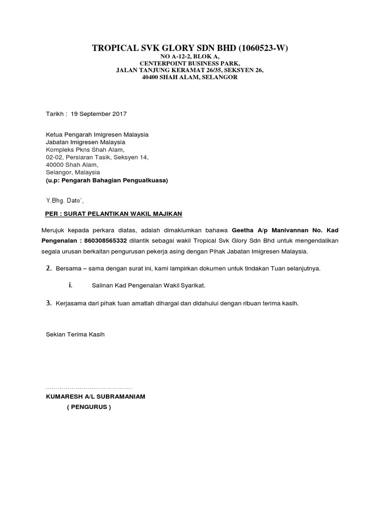 Contoh surat lantikan perwakilan syarikatfull description.